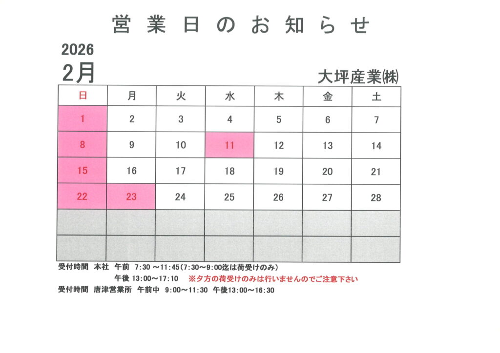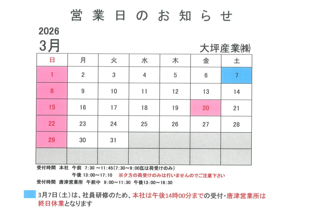 大坪産業にの営業日について